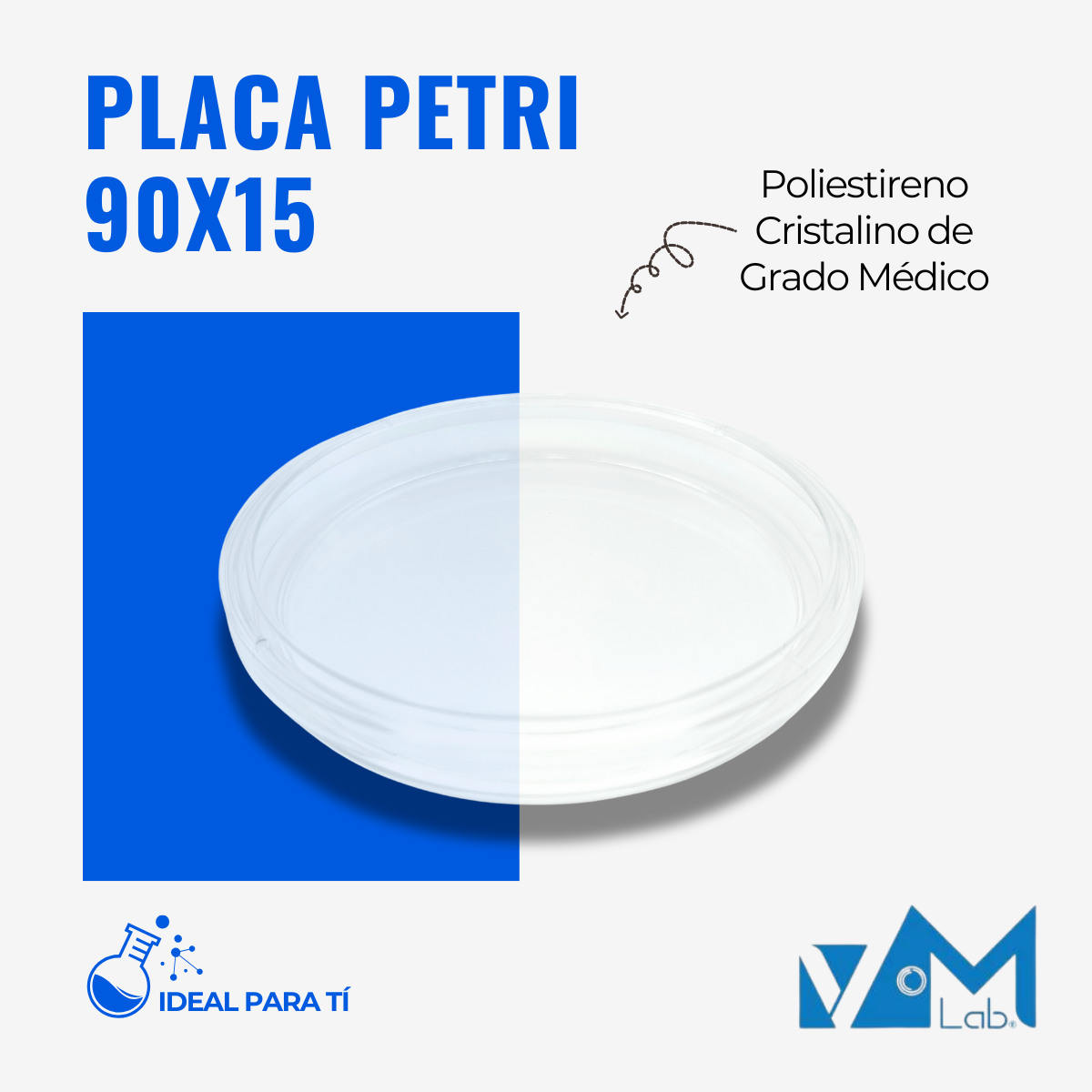 La Placa Petri 90 mm VM90 —también conocida como caja Petri estándar— es el formato más utilizado en laboratorios de microbiología, control de calidad e investigación. Su tamaño versátil la hace ideal para una amplia gama de procedimientos, desde cultivos celulares hasta ensayos de esterilidad.